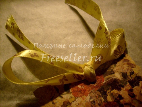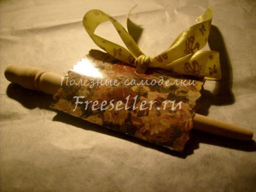 6. Подписываем карточку. Продеваем в отверстия ленточку. Вкладываем вовнутрь цветок (или другой подарок подобной конфигурации ) и завязываем ленточку на бантик.