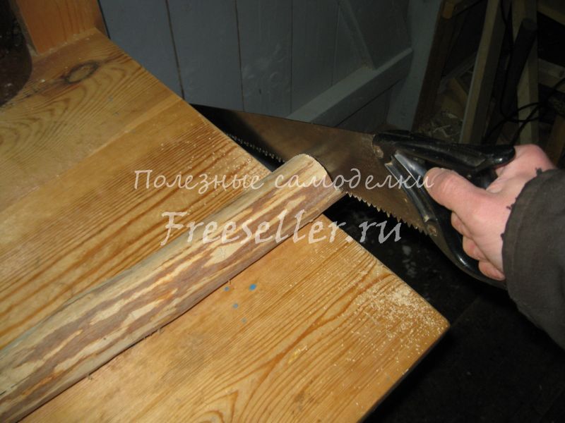 Итак, сначала, если необходимо - обновляем торец у березовой заготовки, отпилив у него небольшую часть пилой. Это кстати можно сделать и электролобзиком, но я специально взял ручную пилу, чтобы лишний раз погреться, поскольку на улице мороз! :e113: