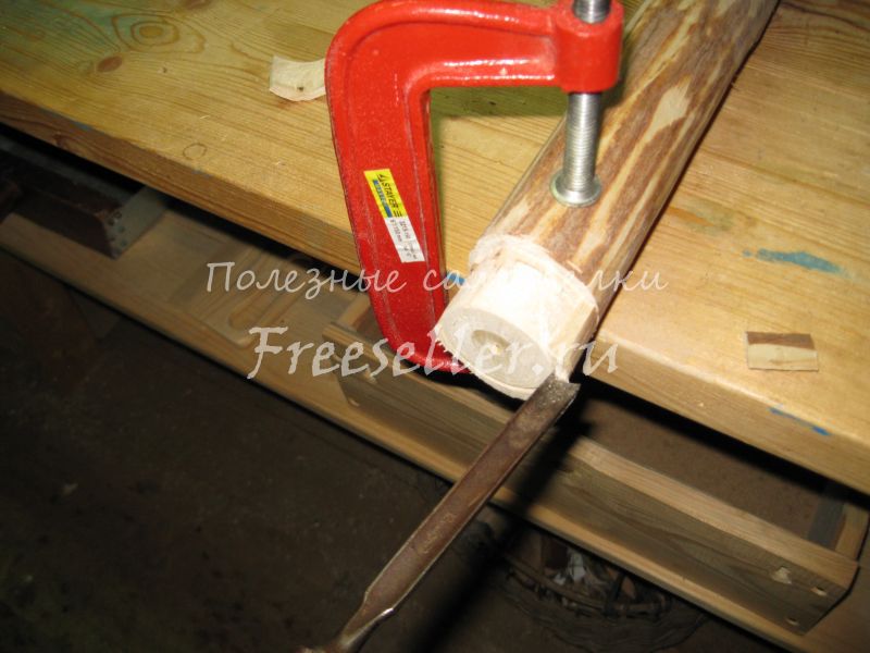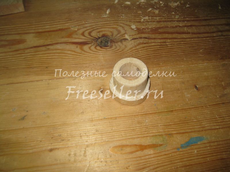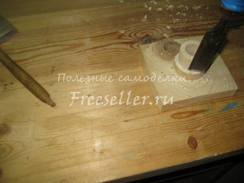 Чтобы придать ей более аккуратный вид, можно обрубить лишнюю древесину с верхнего уступа втулки стамеской.