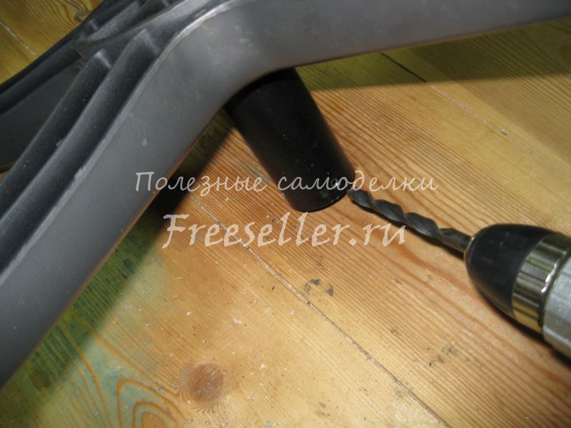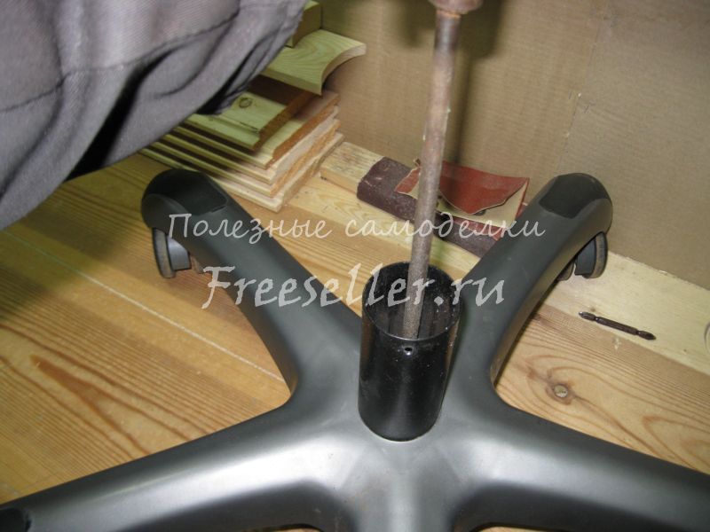 Теперь необходимо произвести небольшую доработку трубки компьютерного кресла, в которую будет вставляться наша втулка, а именно просверлить в ней отверстия под шурупы.