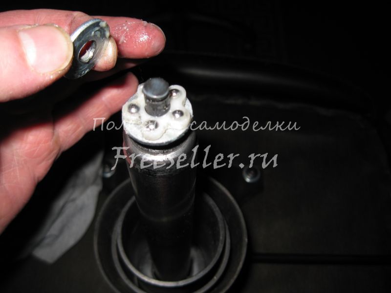 Разобрав его, я увидел, что пластиковая втулка, которая стоит в верхней части наружной трубы газлифта и служит для центрирования и фиксации цилиндра газлифта, сильно потрескалась, и от нее даже отвалилось несколько кусков.