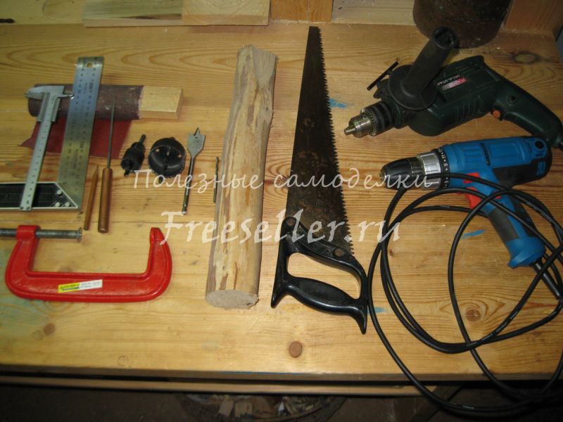 - Отрезок толстого, хорошо просушенного сука от березы, диаметром 6-7 см, и длиной около 50 см.