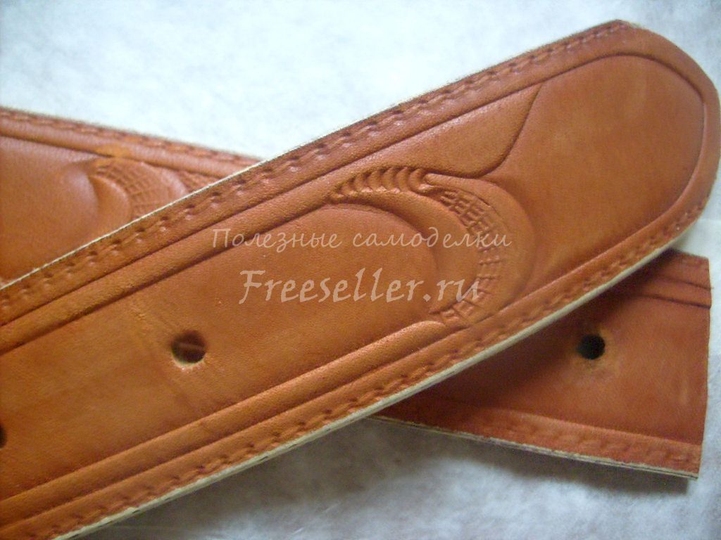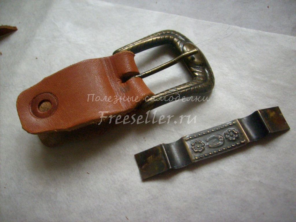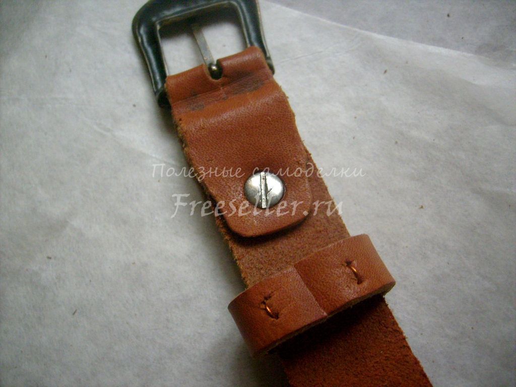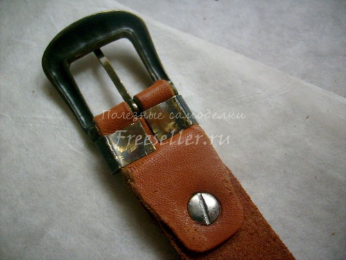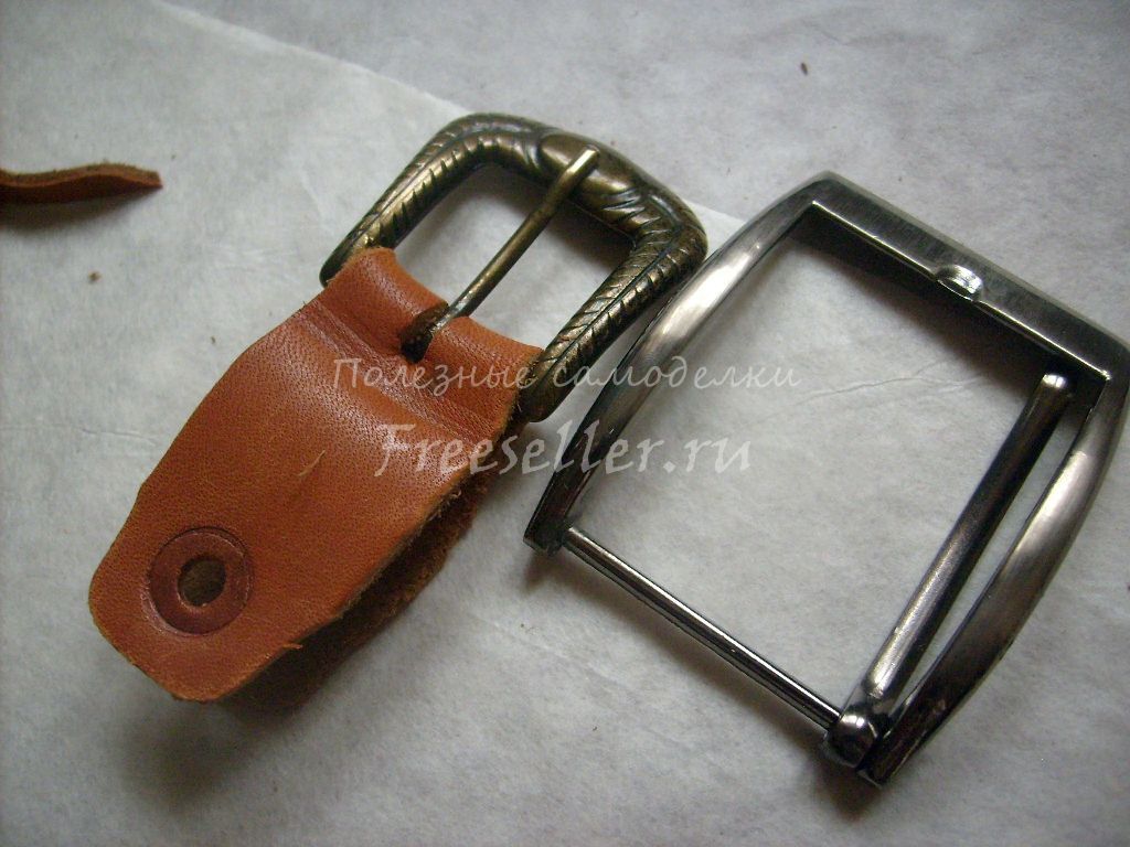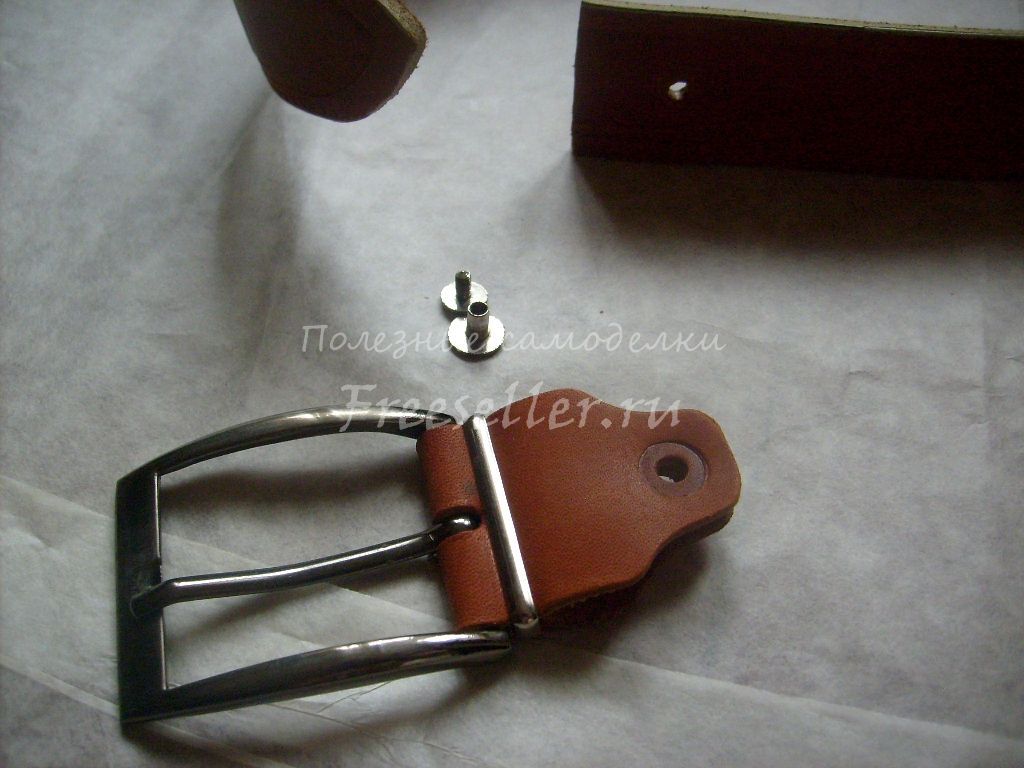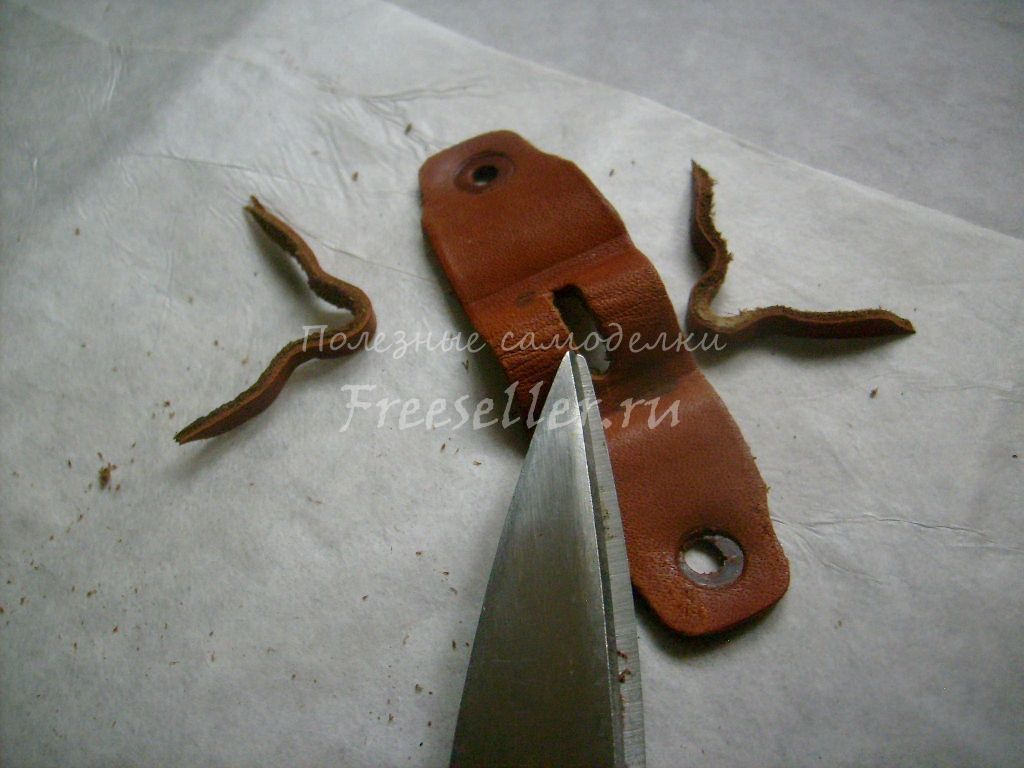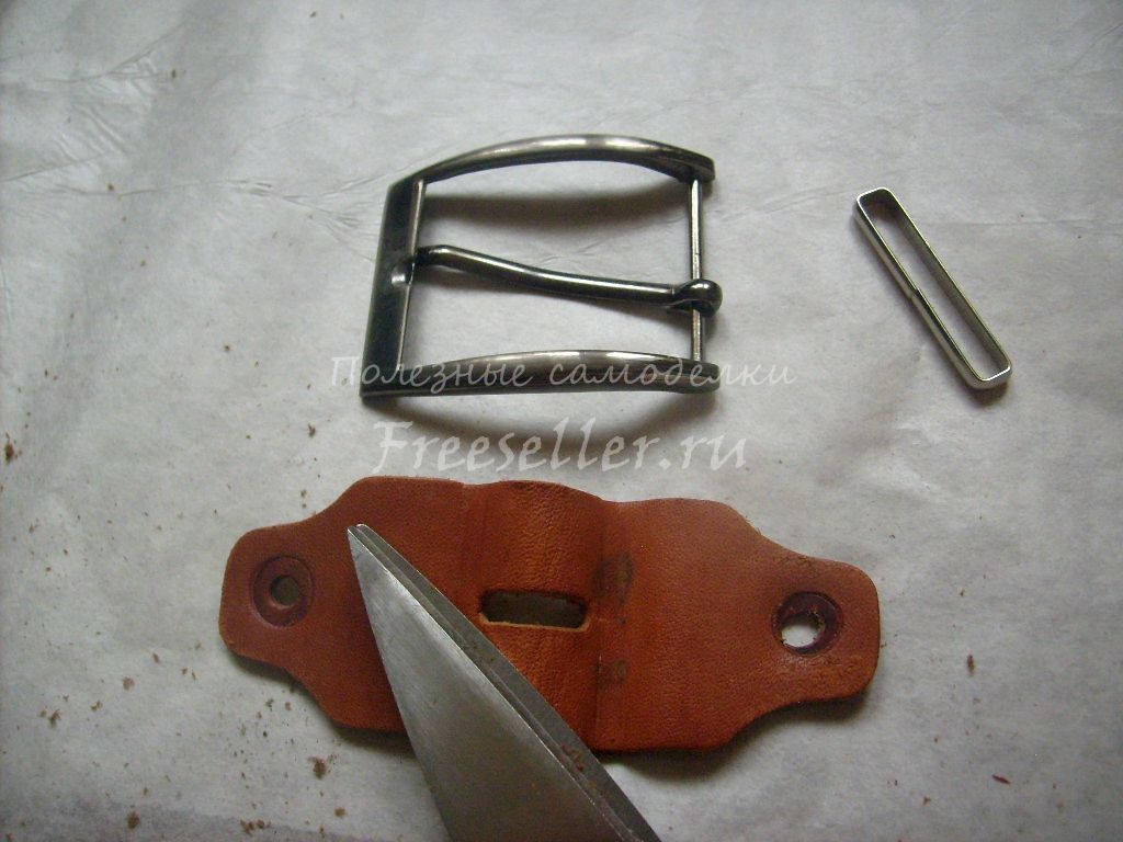 7. Но прежде подгоним под новый размер ремня кожаную пряжку. Отрезаем лишний фрагмент.
