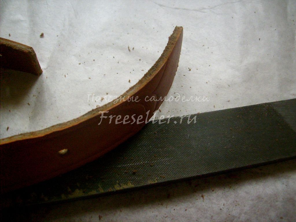 4. За неимением специального клеевого состава для обработки срезов кожаных изделий, мы их просто отшлифуем. Аккуратно обрабатываем края ремня напильником.