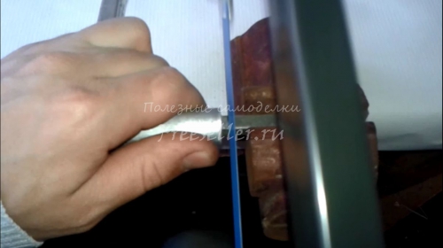 С помощью бор машинки и отрезного диска, по отмеченным линиям выбираем металл под толщину лобзика.