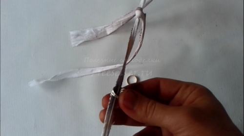 Далее складываем ее пополам и привязываем к ножке стола или к ручке двери, и натираем пастой.