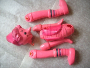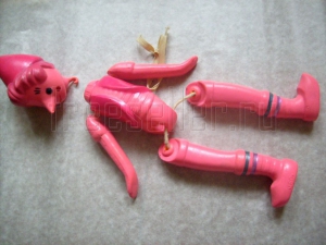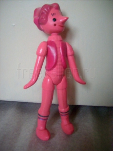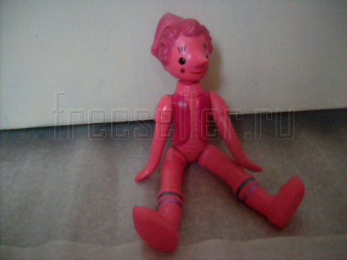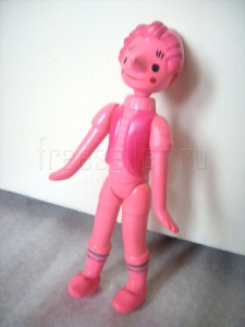 Наш пластмассовый Буратино совсем расклеился. Вернее, истлела резинка, служившая ему внутренним каркасом. Мы заменим её, и он станет как новый. Кроме самой резинки (лучше круглой, но можно и плоской), нам пригодятся в работе ножницы, вязальный крючок и большая швейная игла или булавка.