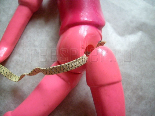 4. Пропускаем резинку сквозь туловище. На другом её конце тоже завязываем узел.