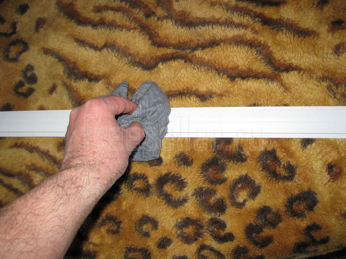 А затем опять вытираем рейку насухо и дополнительно натираем ее сухой тряпкой.