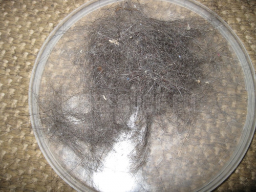 Вот, например, сколько собачьей шерсти, мне удалось собрать со своего покрывала.
