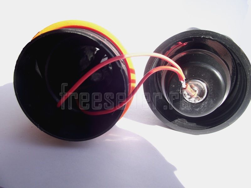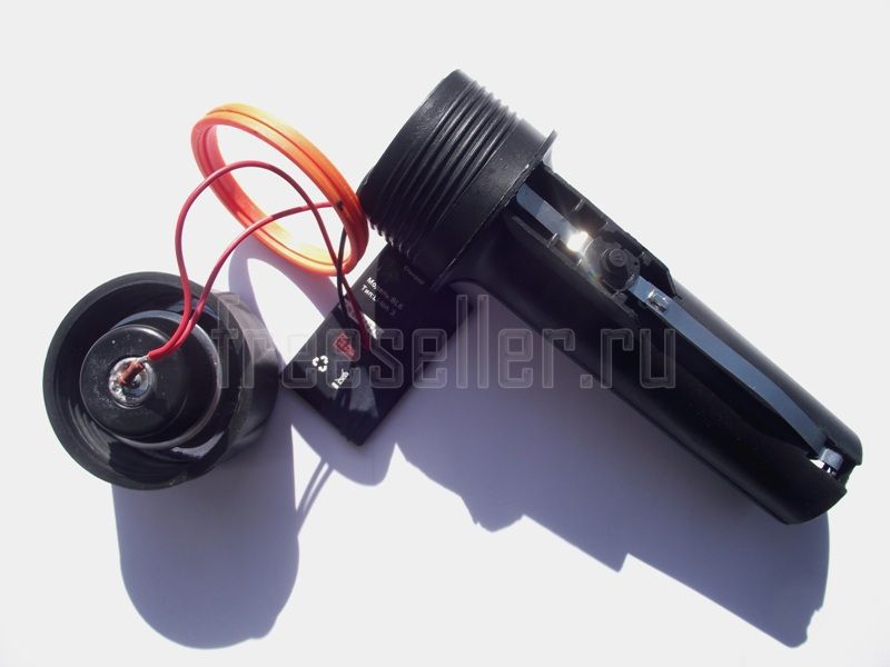 Дальше нужно подобрать аккумулятор, он должен поместиться в ручке фонаря. Мой аккумулятор подошёл идеально. К контактам аккумулятора я прикрепил 2 провода с помощью изоленты, чтобы конструкция была разборная.