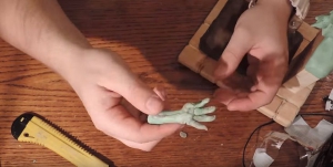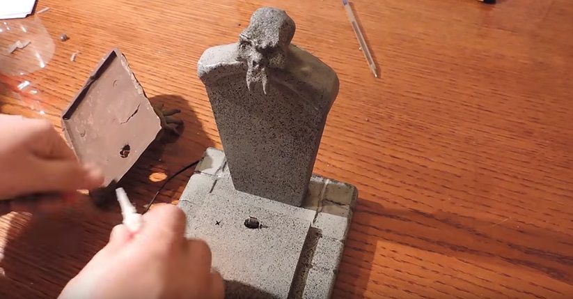 9. Приклеиваем накладку с рукой обратно к основанию.