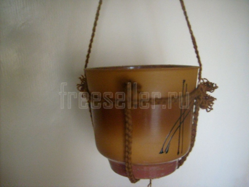 6. Кашпо из плетёных шнуров готово! Можно подвешивать цветочный горшок.