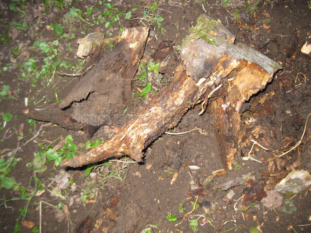 Тем не менее, есть один способ корчевания пеньков, при котором не надо вообще копать никаких ям и перерубать корни. Правда этот способ подходит для корчевки уже несколько состарившихся пеньков с подгнившими корнями, как правило, не менее 3-4 летней давности.