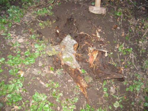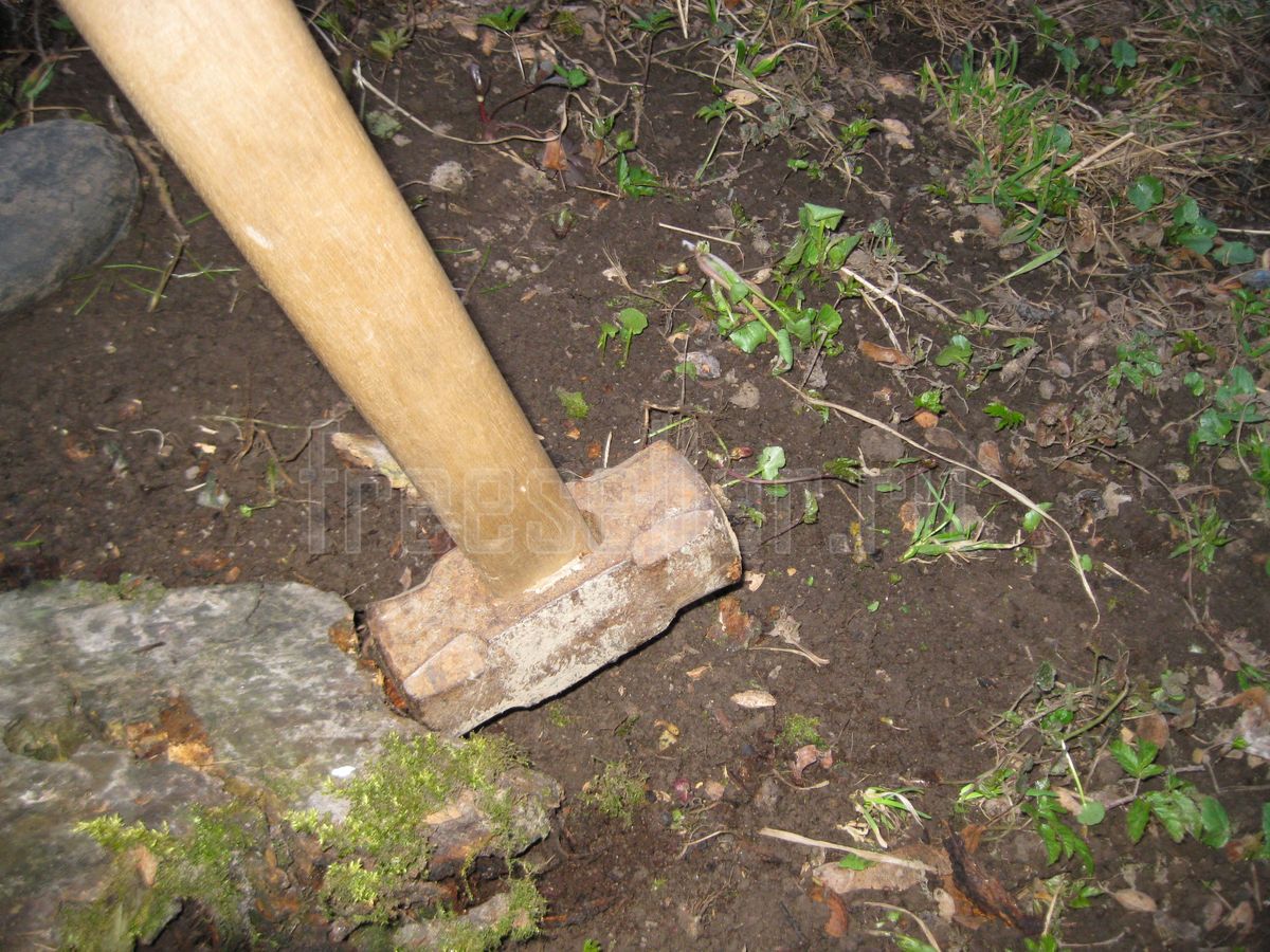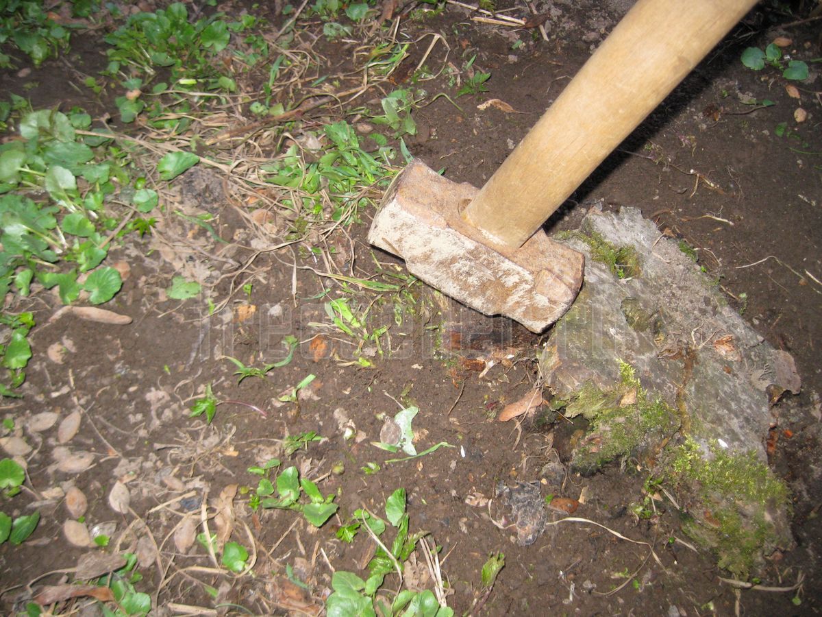 Совет для дачников и садоводов по корчеванию старых подгнивших пеньков, при помощи кувалды, что позволяет обойтись без копания ям и таким образом, сохраняет невредимыми корни соседних растений.