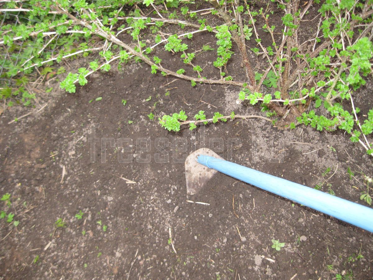 Затем, это место необходимо хорошенько прорыхлить тяпкой.