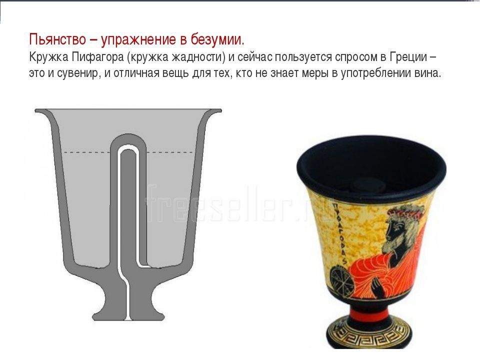 Чаша Пифагора станет отличным подарком для ваших друзей: будет, чем заняться и посмеяться. Эту греческую чашу вы можете купить в Греции (на Кипре цена 4-5 евро) и даже в России. Но проще её сделать самому за сущие копейки!