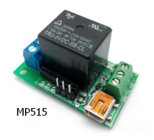 MP515 представляет собой силовое реле с электронным ключом. Модуль предназначен для управления силовыми электроприборами до 2000 Вт от слаботочных выходов различных датчиков и устройств управления, обеспечивая гальваническую развязку от электроприбора. Для управления модулем необходимо напряжение от 1В до 5В, которое можно получить от головного устройства. В модуле предусмотрено место для установки беспроводного приемника MK324 диапазона 433 МГц. Питать модуль можно как от источника напряжением +5В, например PW0512, так и от USB порта ПК или адаптера зарядки смартфона или телефона.