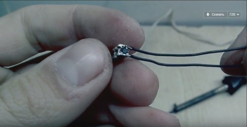 После чего, припаиваем 2 провода к моторчику.