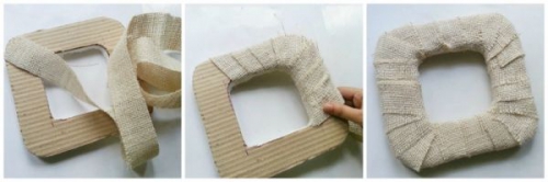 Как сделать рамку для фото или украшение, используя мешковину.
