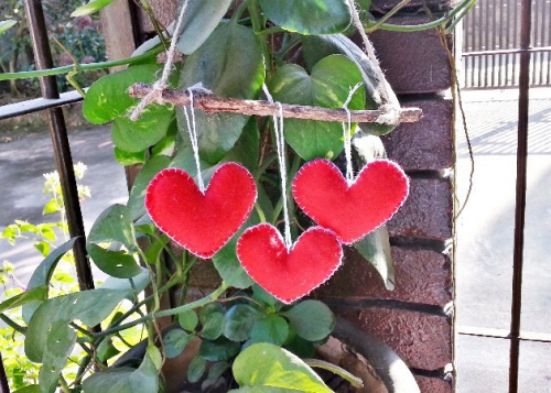 Как сделать украшение: «Сердца на веточке», используя фетр или ткань.