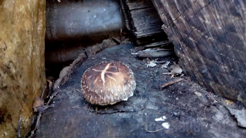 А вот и первый шиитаке, мы и их немного посадили, сейчас там ещё несколько.