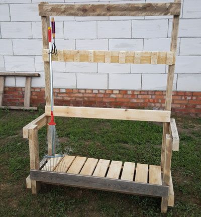 Самодельный стеллаж для дачного инвентаря. (грабли, вилв, лопаты и т. д.)