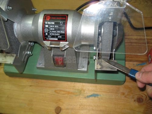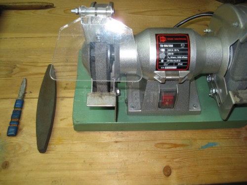 Для того чтобы починить этот ножичек и довести его до ума, мне понадобились сам нож, точильный станок и абразивный брусок для доводки.