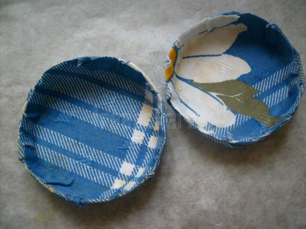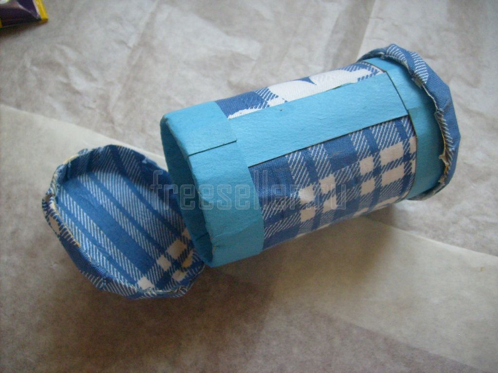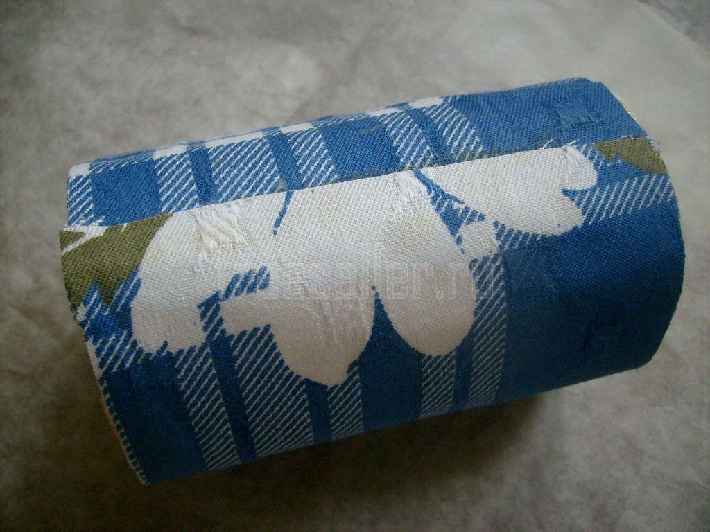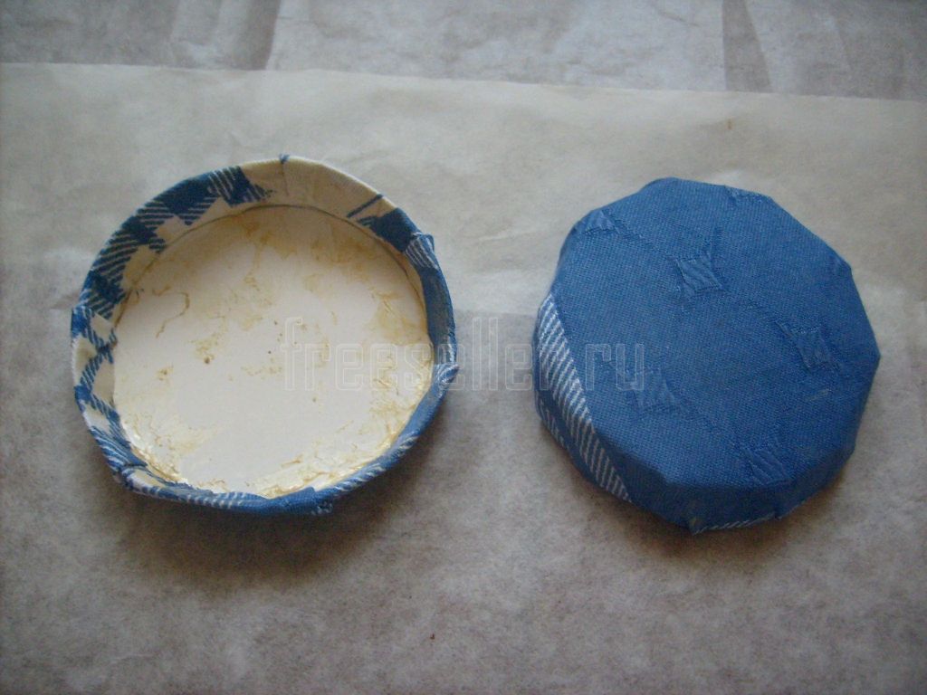 Оклеиваем обе крышки, загибая края ткани вовнутрь и приклеивая там.