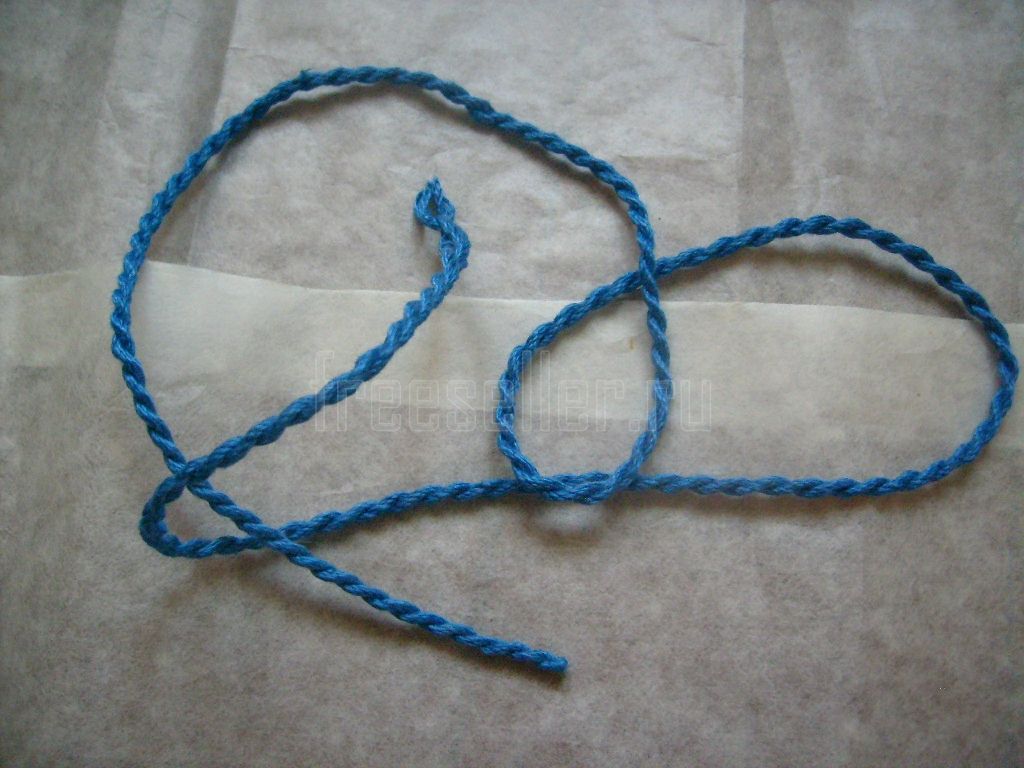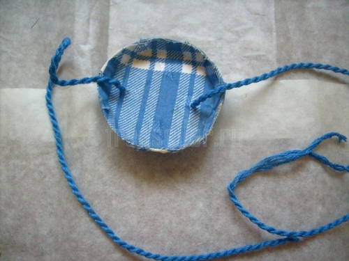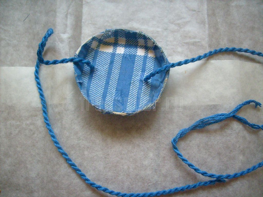 Закрываться, вернее, завязываться, она будет на шнурок. Можно использовать готовый или, как мы, сплести его самим из ниток подходящего цвета.