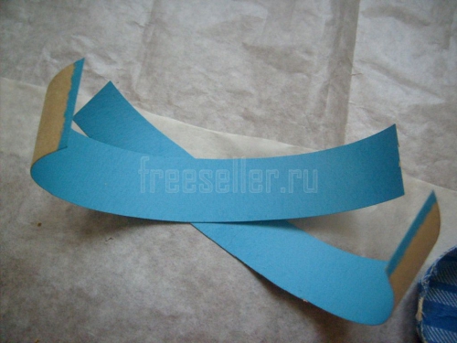 7. Из плотной цветной бумаги вырезаем полоску размером 15 см на 2 см.