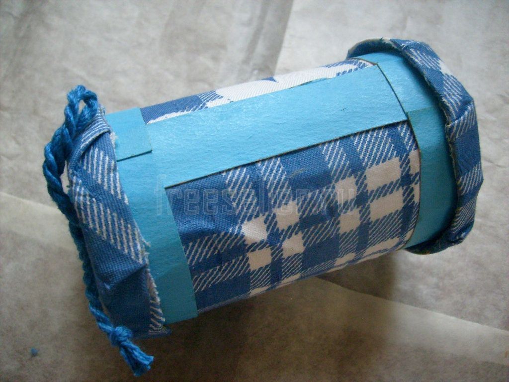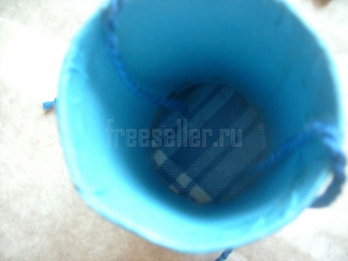 Надеваем крышку на один конец цилиндра. Выпускаем концы шнура наружу.
