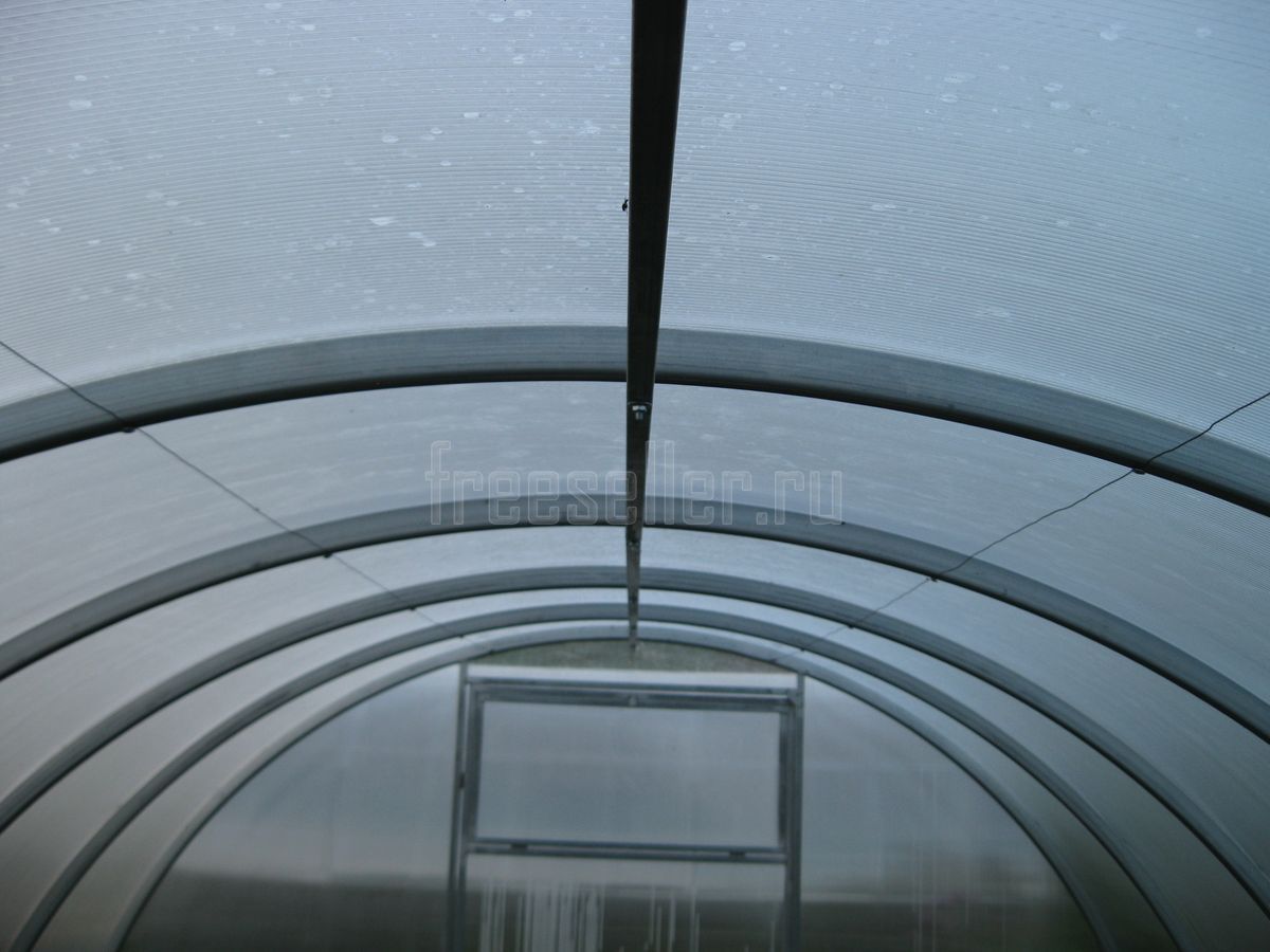 Во-вторых, каркас этой теплицы выполнен из замкнутого прямоугольного и квадратного оцинкованного профиля, что существенно повышает ее прочность, жесткость и устойчивость, например, зимой во время воздействия снеговой нагрузки.