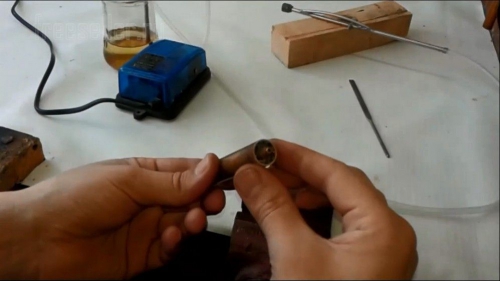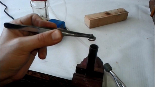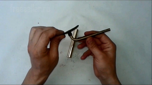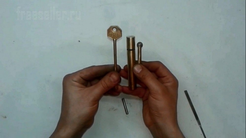 Теперь нам нужно спаять обе трубки между собой таким образом, чтобы кресало находилось на расстоянии в пару миллиметров от корпуса зажигалки. Для этого я использовал стержень латунного ключа.