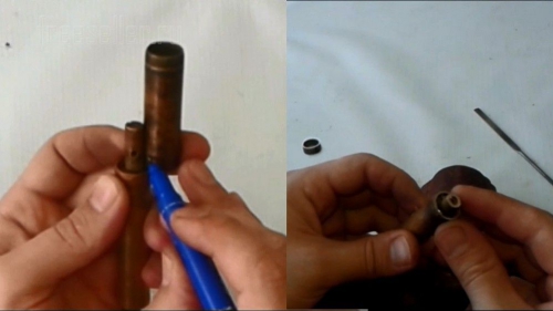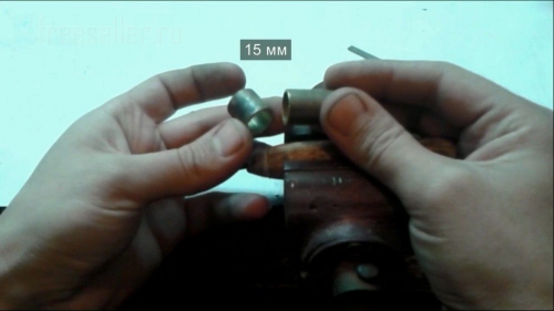 Обрабатываем его наждачной бумагой и отрезаем трубку в 45 мм. а затем делаем паз для кресала глубиной в 10 мм.