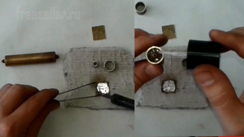 И впаиваем в корпус будущей зажигалки, углубив примерно на 1 мм.