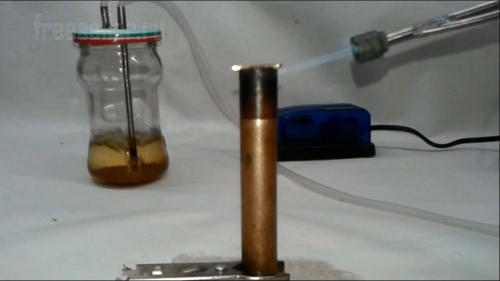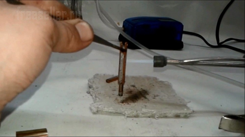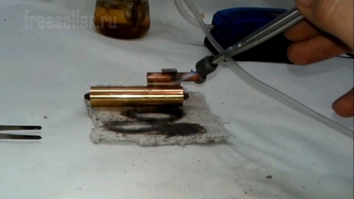 И прогревая горелкой, припаиваем клапан, пластинку и трубку между собой.