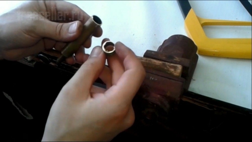Штангенциркулем отмечаем 13 мм и вырезаем фрагмент трубки. Вставив сверло на 11, обстукиваем деревянным молотком и уменьшаем внутренний диаметр до 11 мм.