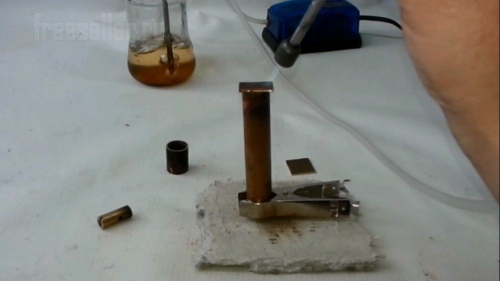 На боковые отверстия наматываем тонкую, медную проволоку и паяем. Верхнее отверстие просто заполняем припоем, а заодно лудим поверхность. Так же наносим припой на пластинку и трубку.