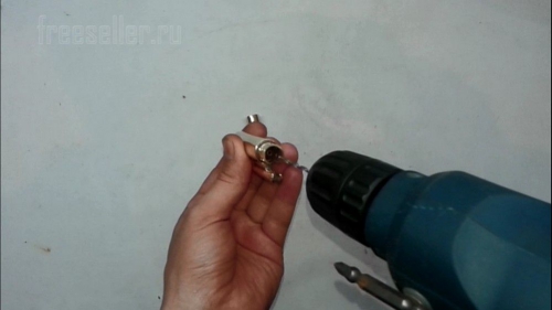 Теперь нам нужно увеличить отверстия в ниппелях. Верхний сверлим в 2,5 мм, а нижний в 3,5 мм.
