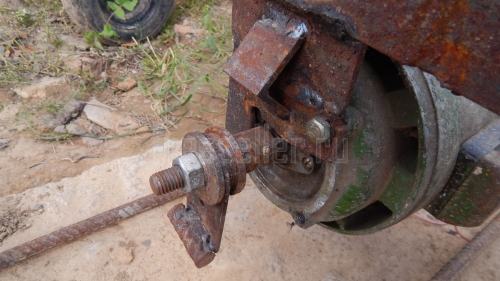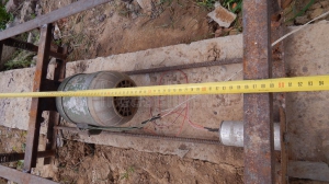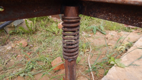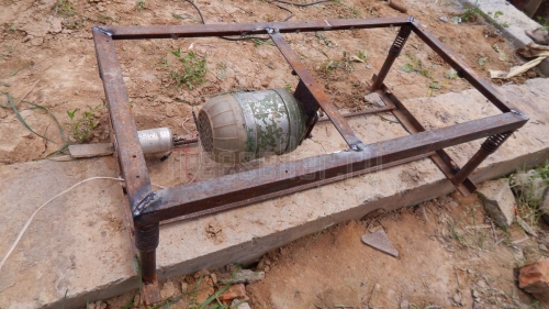 Нижняя часть рамы состоит из двух уголков, которые сварены между собой арматурой толщиной 12 мм, и к каждой части уголка приварено по две трубки диаметром 30 мм, на которые садятся пружины. Пружины я взял от клапанов двигателя внутреннего сгорания (от какого именно не знаю, просто подошли, вот и использовал их). Верхняя часть стола сделана из того же уголка 30 мм и сварена в рамку размером 890 мм* 460 мм. Снизу к углам рамки приварены куски трубы диаметром 30 мм, которые садятся на пружины. Также к рамке приварен двигатель, который является источником вибрации. Это простой двигатель от промышленной швейной машинки на 240 Вт и 1400 об/мин, на вал которого садится эксцентрик.