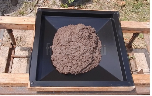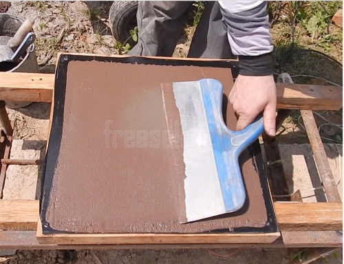 Вибростол включаю на одну минуту, затем выключаю и разглаживаю бетон шпателем.