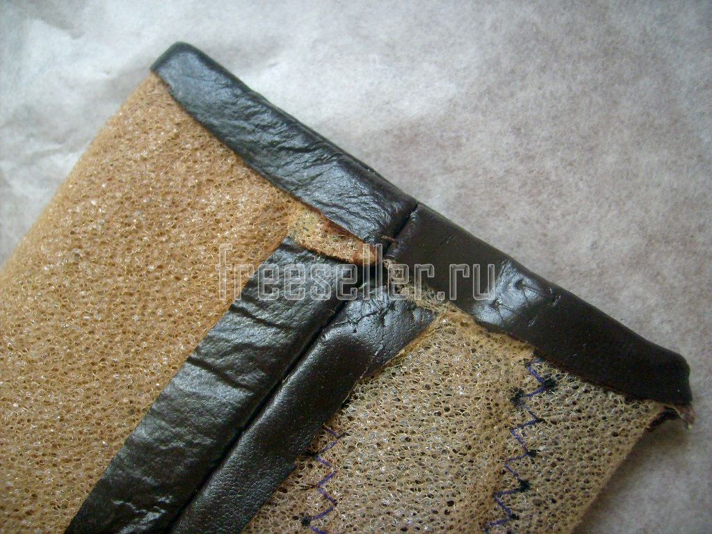 Срезаем поролон с припусков шва.