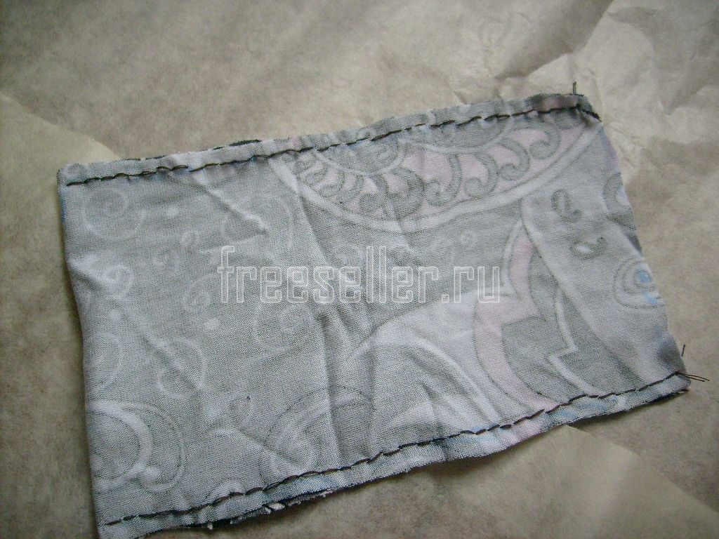 Складываем её пополам лицом вовнутрь по длине и сшиваем с обеих боковых сторон.