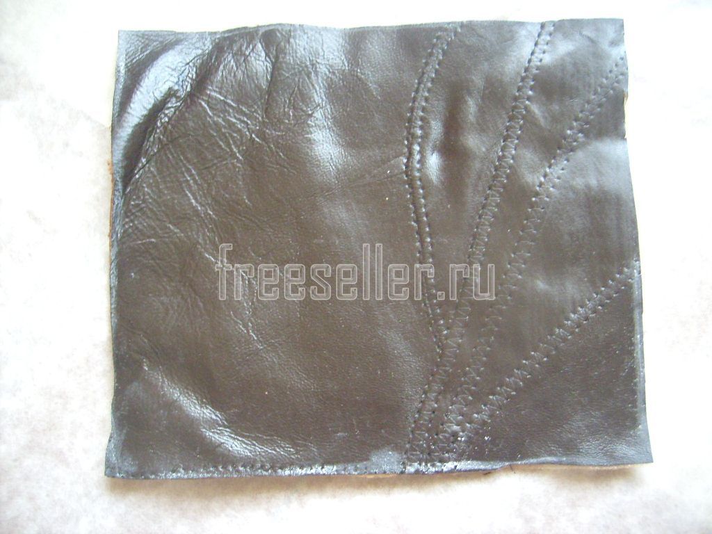 1. Выкраиваем из кожи на поролоновой подкладке прямоугольник размером 18 см на 15 см.