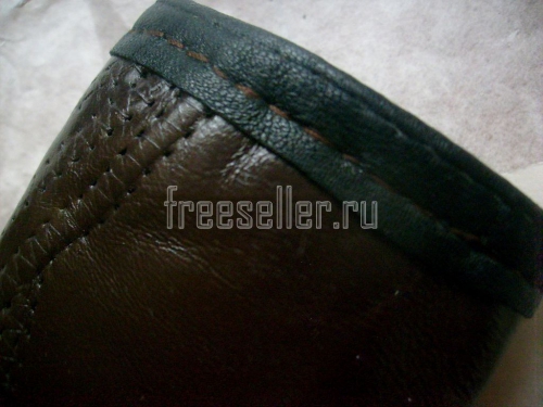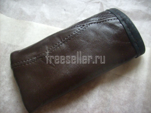 5. Выворачиваем трикотажную подкладку на лицо и надеваем её на кожаную основу футляра. Несколькими стежками прихватываем подкладку к верху по бокам и внизу.
