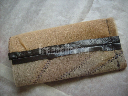 Кроме лоскута кожи на тонком поролоне, нам понадобятся тонкий трикотаж, полоска тонкой кожи другого цвета, клей, нитки, чертёжные и швейные принадлежности. Изделие вполне можно сшить вручную - оно небольшого размера. Если же есть специальная насадка к машине для работы с кожей, то лучше воспользоваться ей.