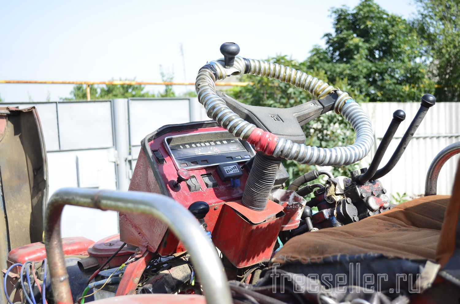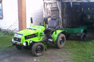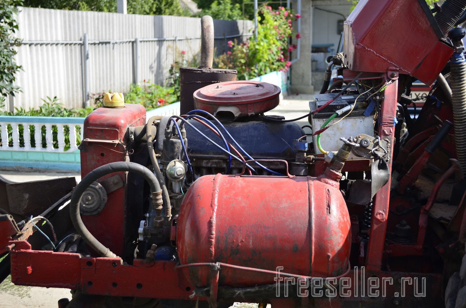 Самодельный минитрактор с двигателем ВАЗ 2101 работающий на газу (пропан-бутан), с уникальной коробкой передач, сделанной из одной целой и еще одной половины ГАЗоновской КПП, оборудованный мостом с редуктором отбора мощности, задними колесами от ГАЗ 66, что помогает эффективно работать на рыхлой земле полей или огородов на приусадебных участках, используя плуги, фрезы и т.д, а также, гидравликой (спереди и сзади), для удобства использования навесного оборудования.