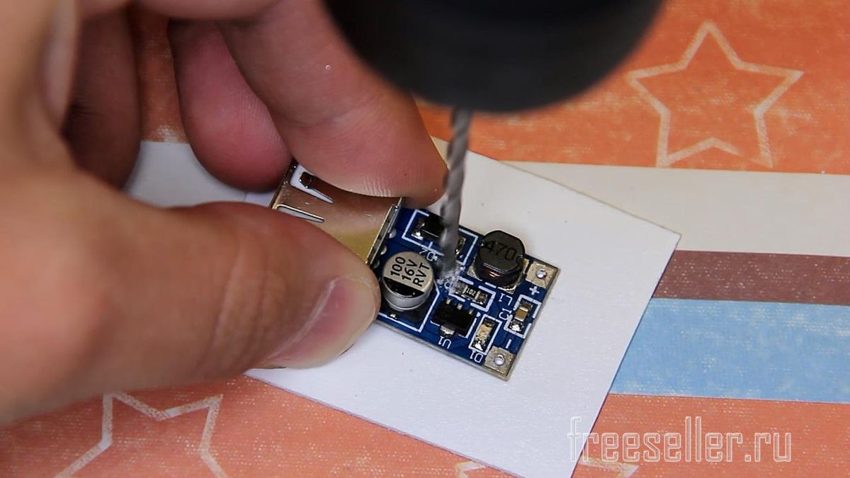 Для крепления в преобразователе необходимо сделать отверстие постаравшись не оборвать электрические соединения.