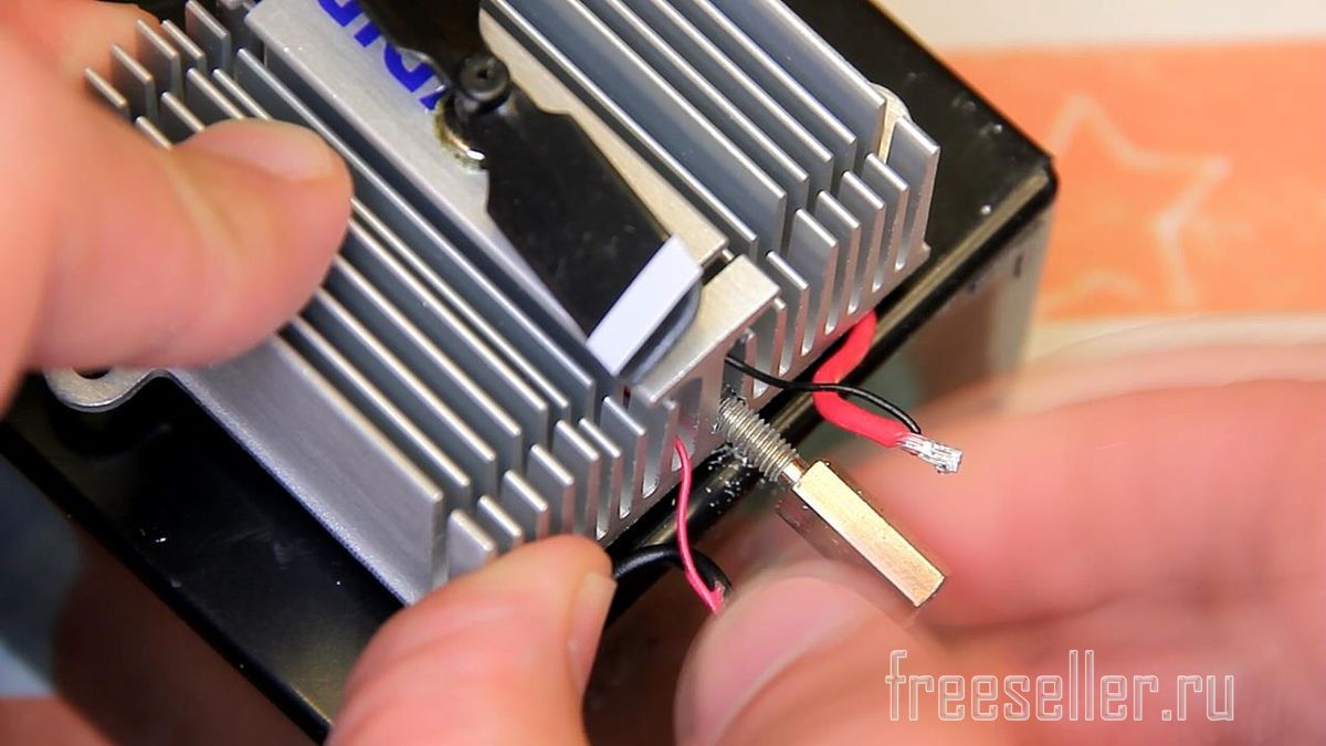 Крепим преобразователь к радиатору, длинные стойки применены не случайно, преобразователь лучше удалить подальше от источников тепла.